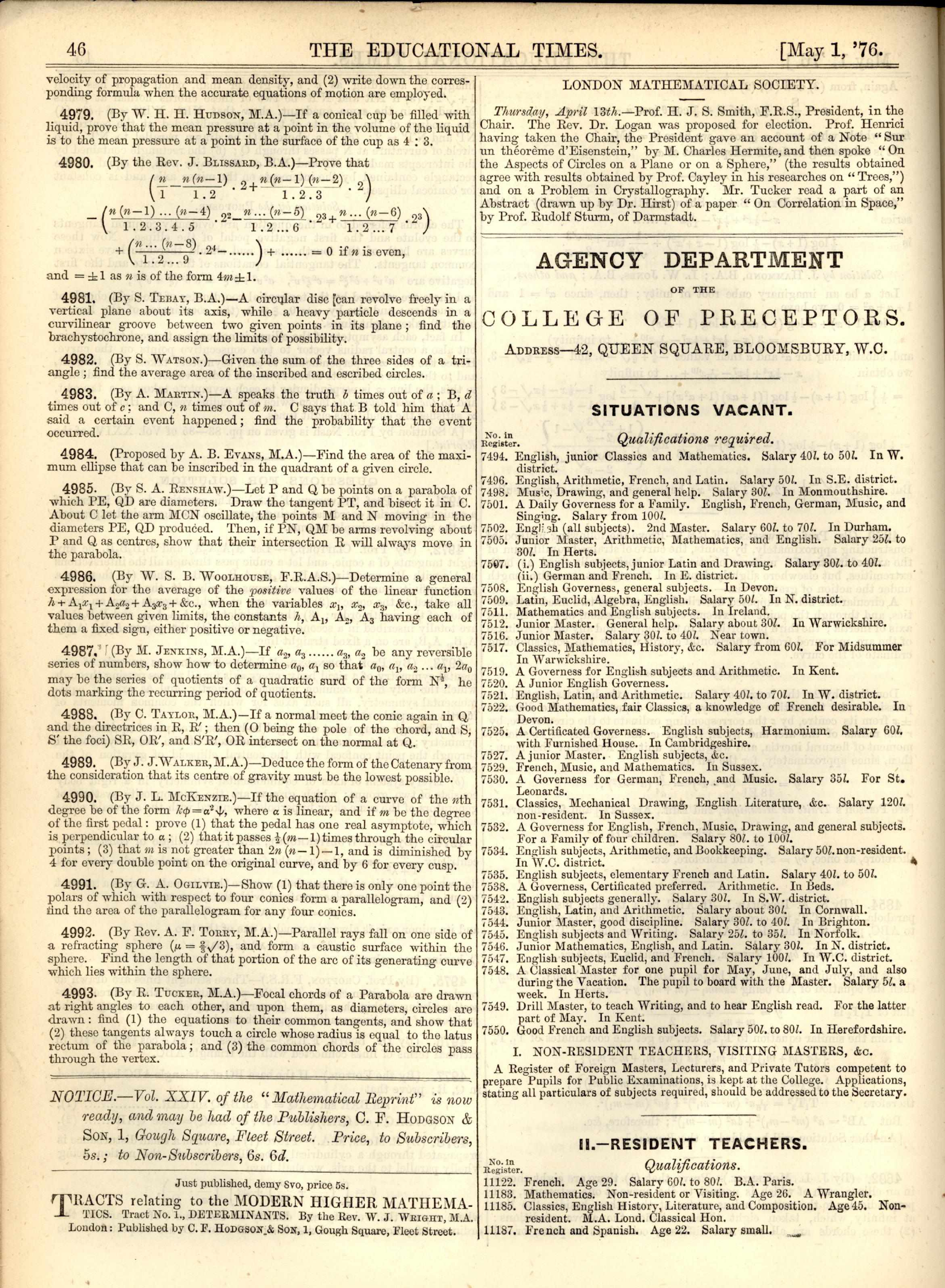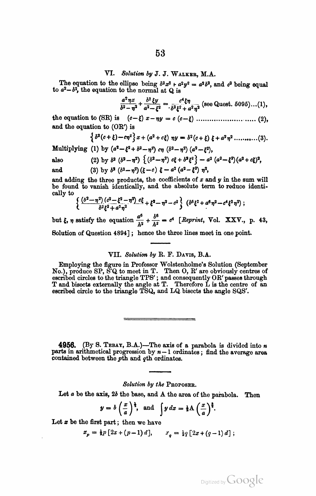 J. Wolstenholme, MQ Vol 26