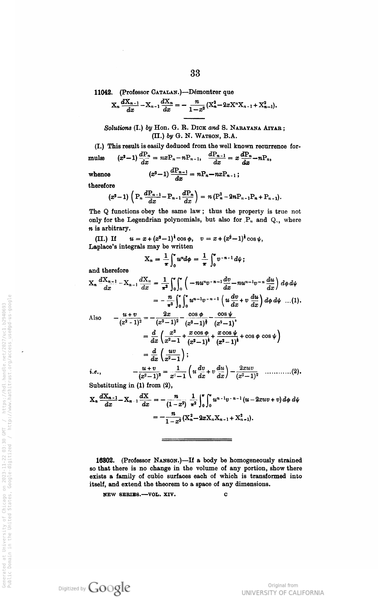 G.N. Watson, MQ Vol 89