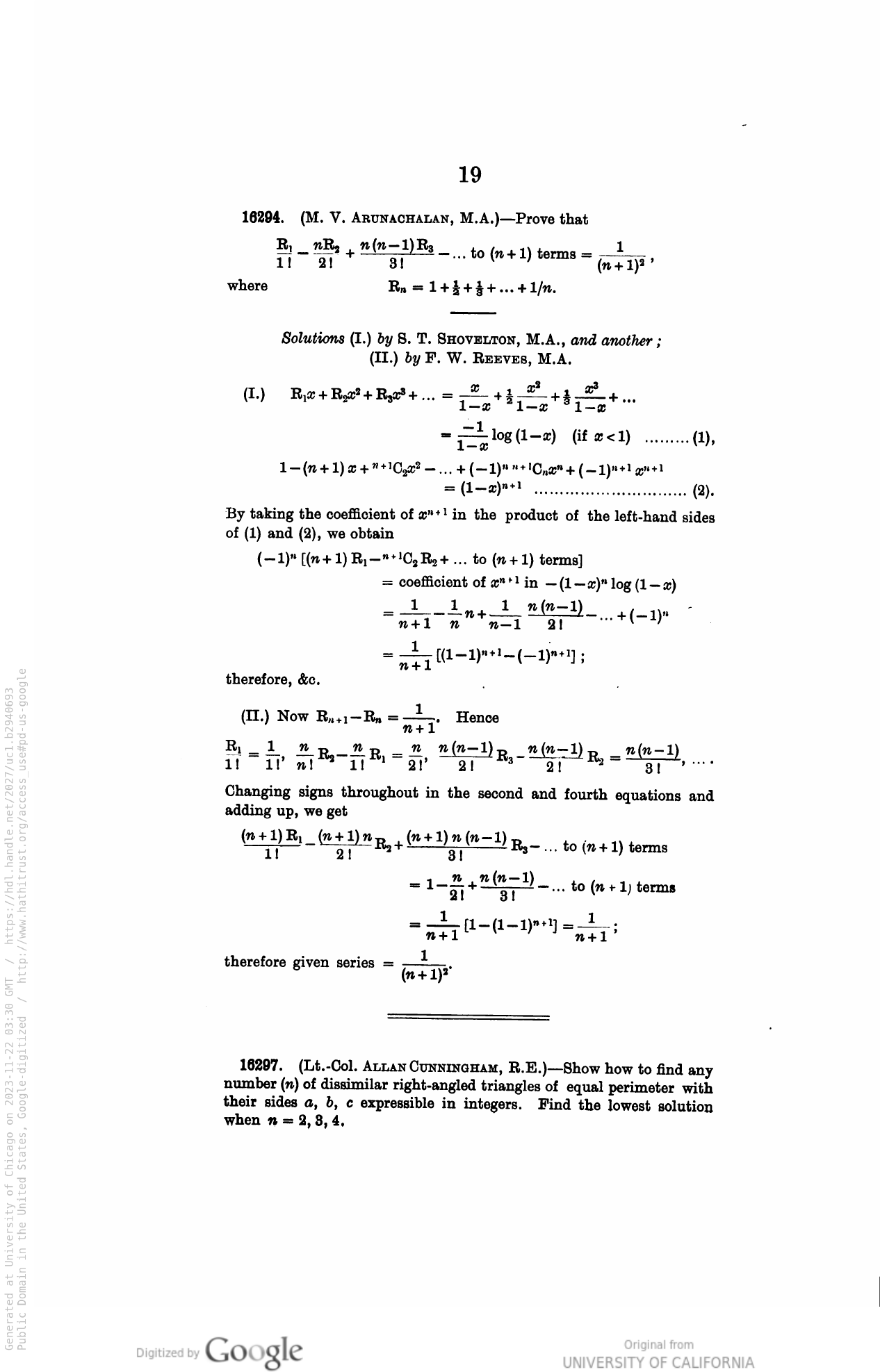 F.W. Reeves, MQ Vol 89