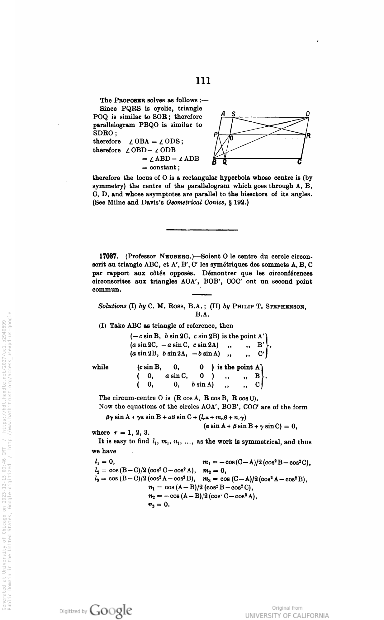 Triangle & Circle Geometry (Trilinear coordinates)