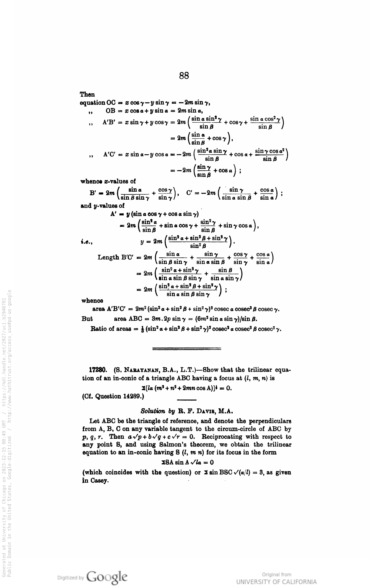 Triangle & Circle Geometry (Trilinear coordinates)