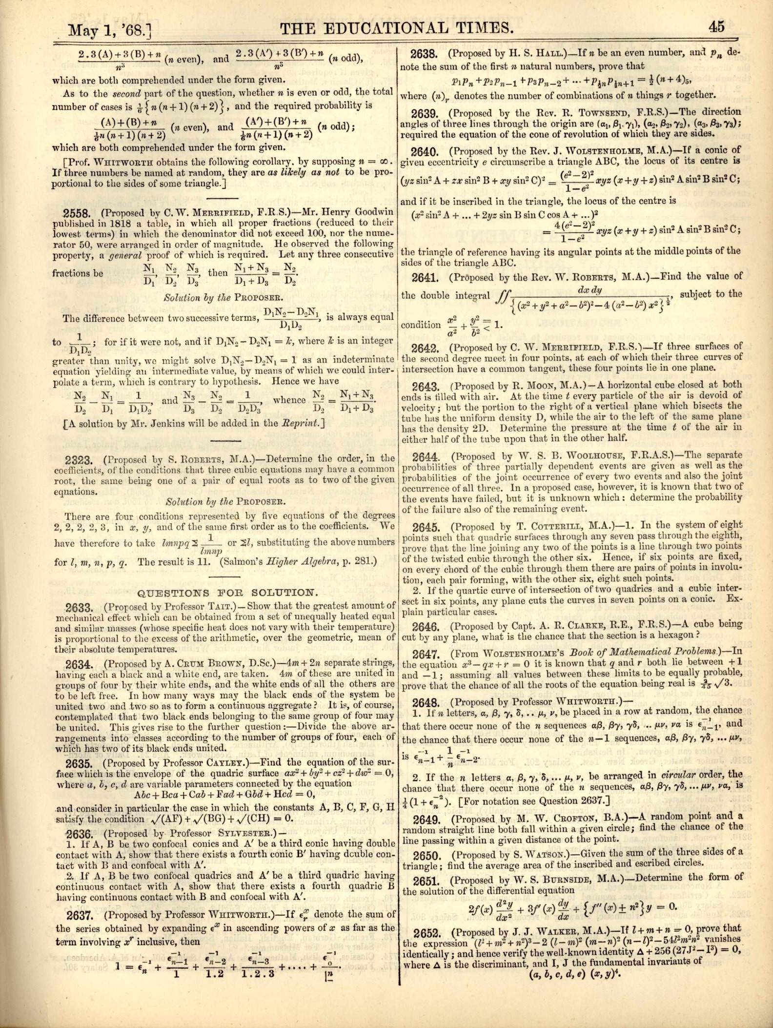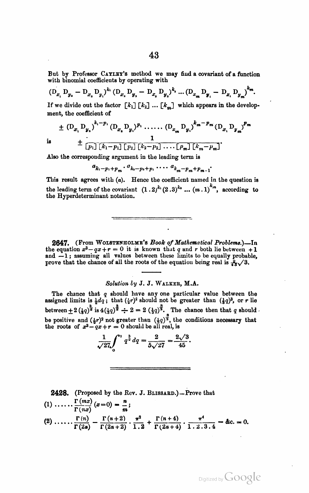J. Wolstenholme Book of Mathematical Problems
