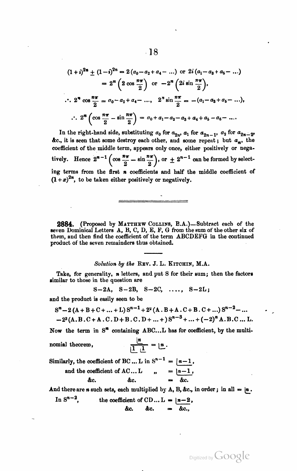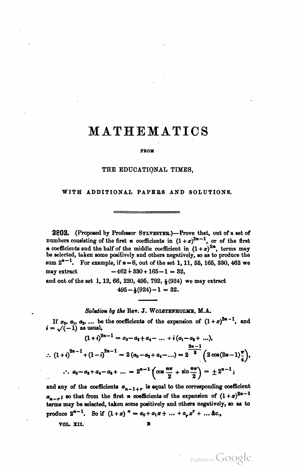 J. Wolstenholme, MQ Vol 12