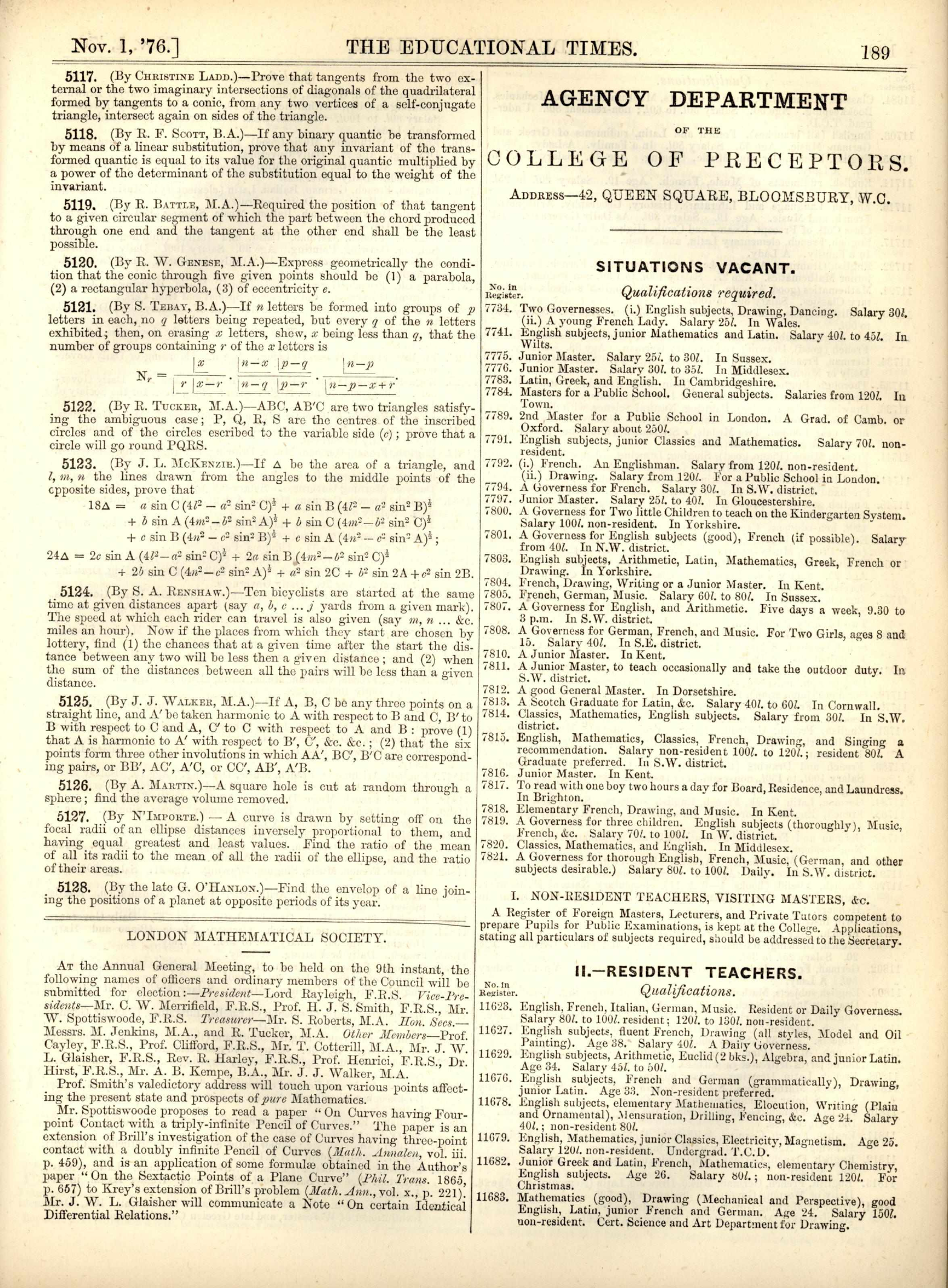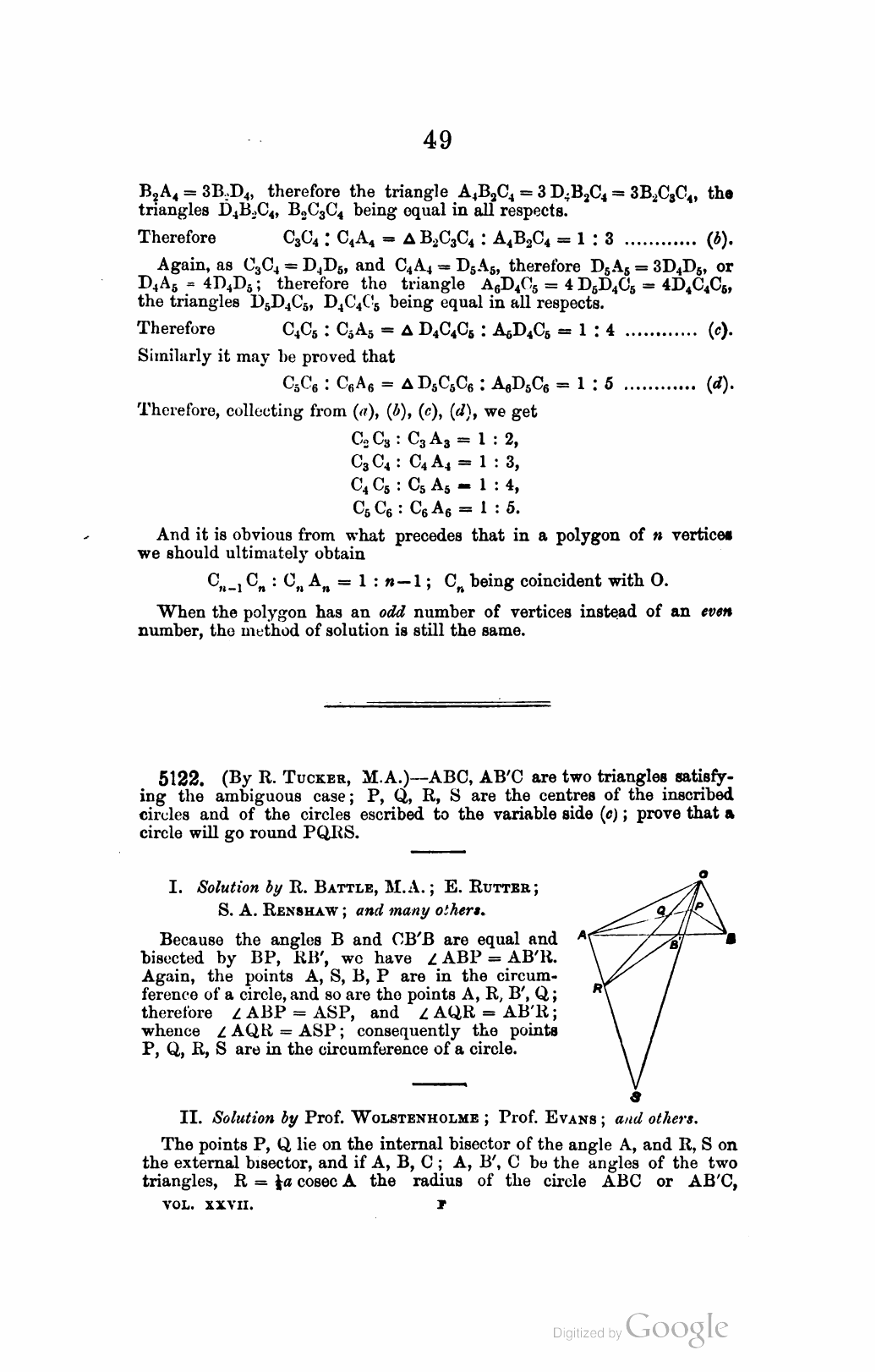 J. Wolstenholme, MQ Vol 27